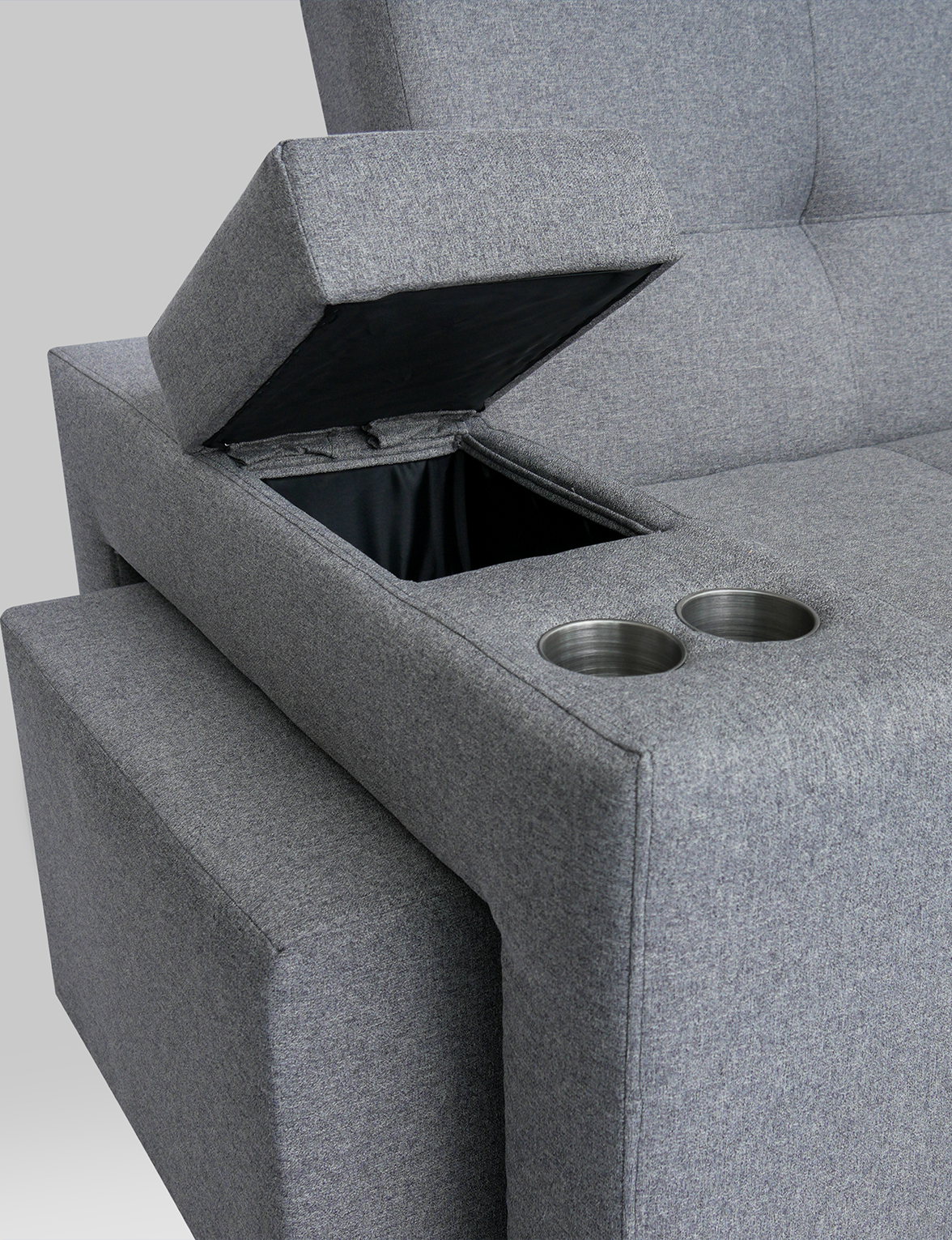 Sofá Cama Multifuncional con Posavasos y Baúl – Estilo inteligente para espacios modernos